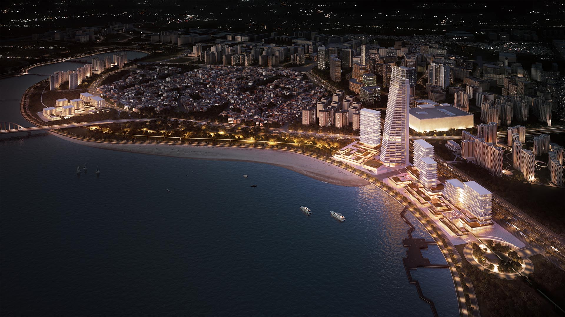 A bird-view of the project during the night.