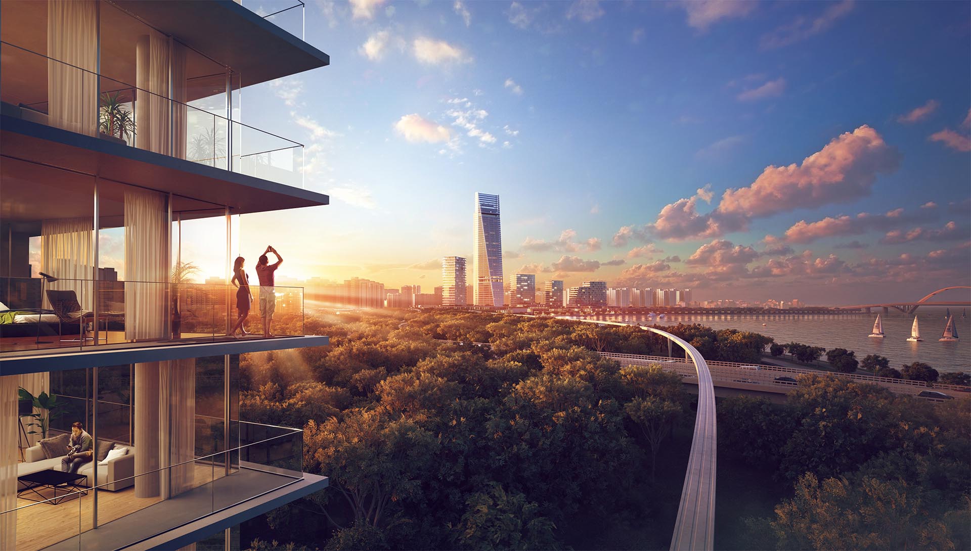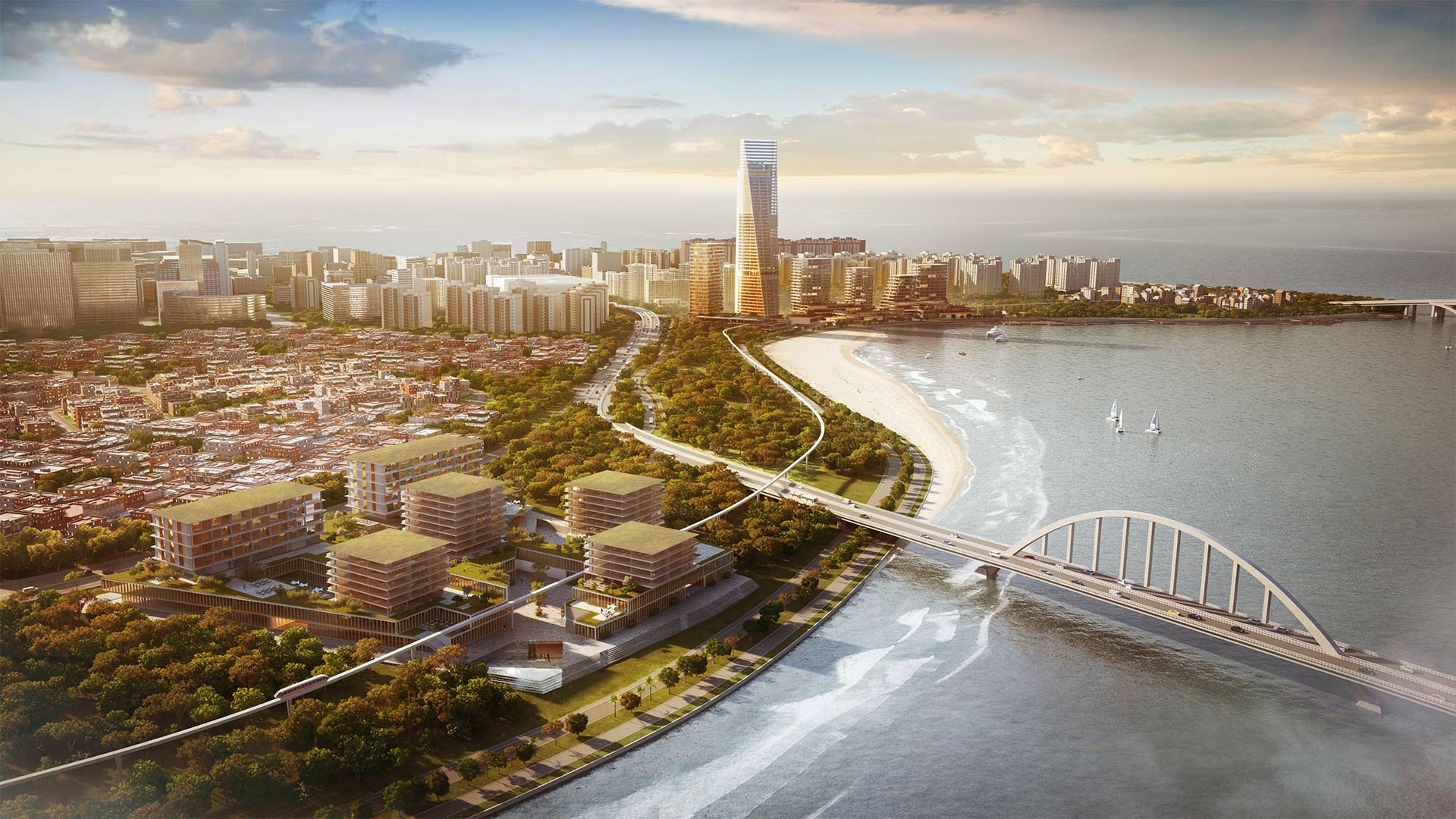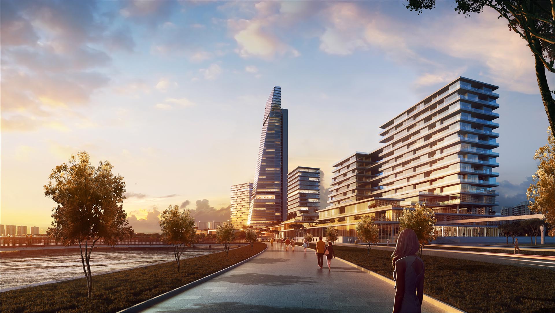 Main axis with the super-highrise building as a focusing point.