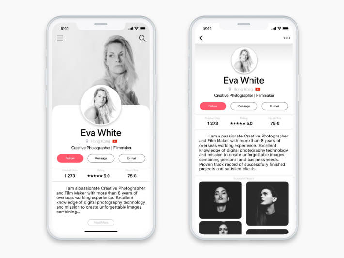 The sixth DailyUI #006 Challenge: User Profile. It is a concept of a Freelance service for Photographers. Stock pictures by: @jcosens, @petersjo.