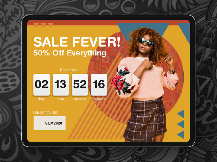The 14th DailyUI #014 Countdown Timer. Countdown was inspired by fashion stores offering seasonal discounts for selected products. Stock picture by: @godisable-jacob.