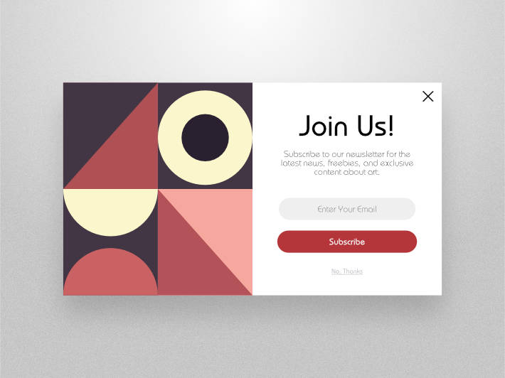 The 16th DailyUI #016 PopUp/Overlay. The PopUp concept was inspired by the Bauhaus style that orginated in Germany over hundread years ago.