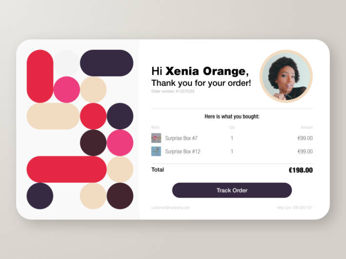 The 17th DailyUI #017 Email Receipt. The Email Receipt was inspired by Classical Geometric patterns, using modern and vivid colors. Stock picture by: @kalvisuals.