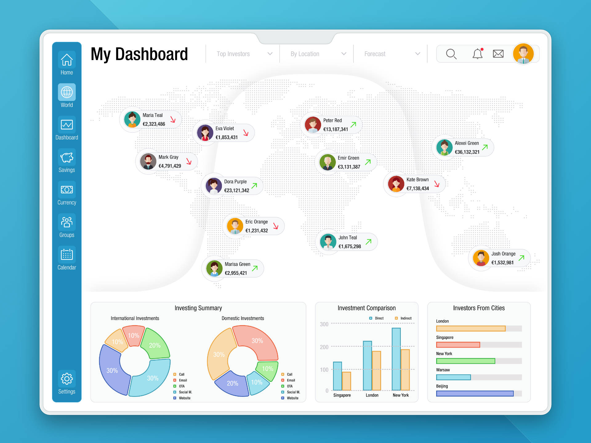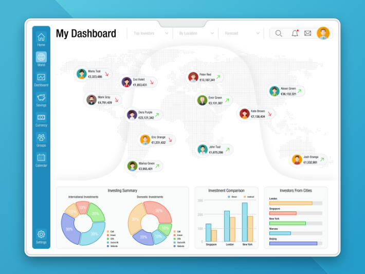 The 18th DailyUI #018 Analytics Chart. The analytics dashboard was inspired by overseas investors making their business from different timezones.