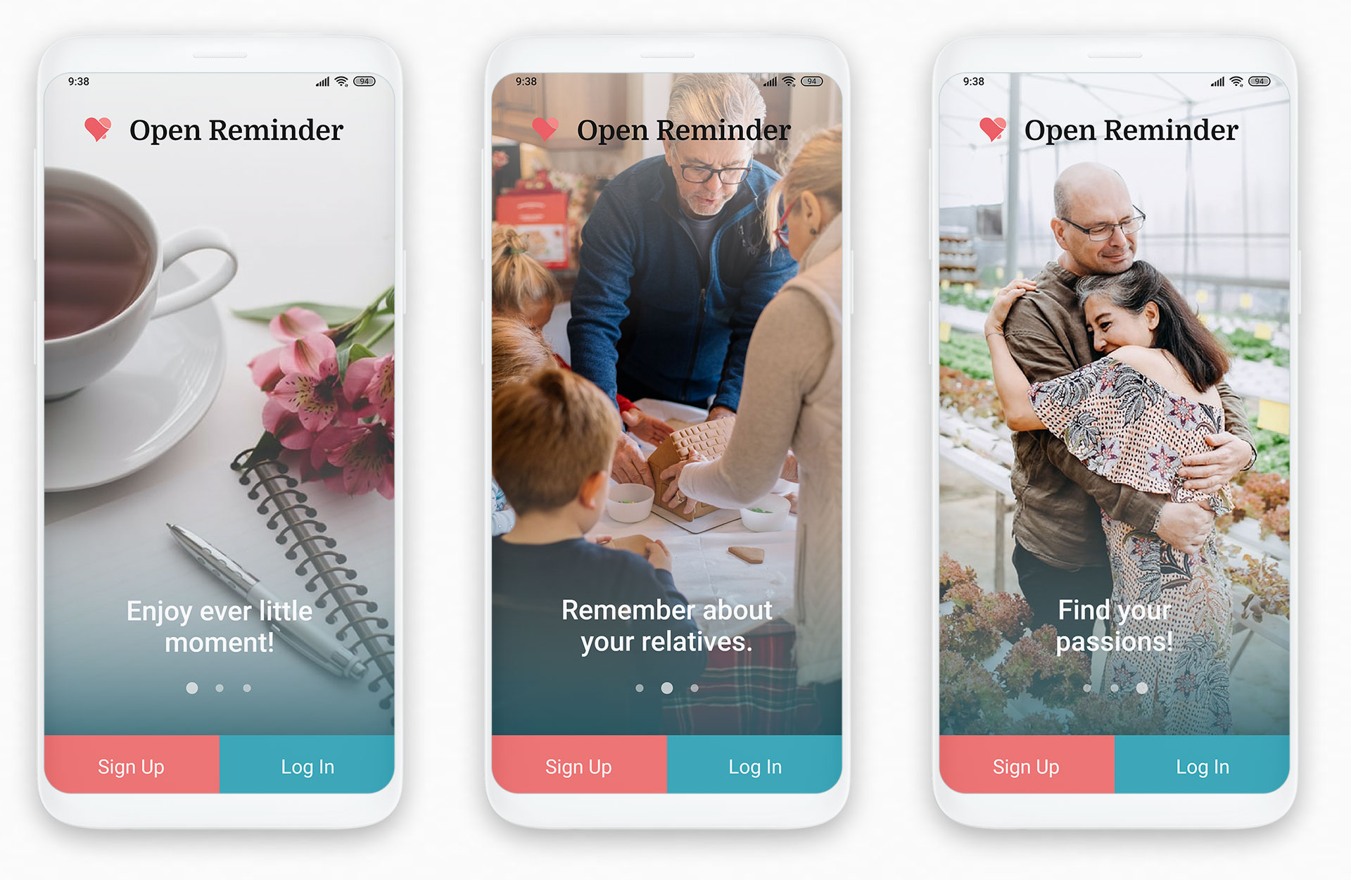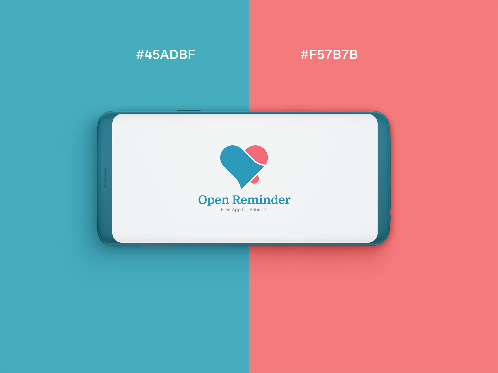 In the first step, before attempting to create a comprehensive UI Design Concept, I started with creating branding. The logo of Open Reminder represents a heart and a notification bell. The logo uses two main branding colors.
