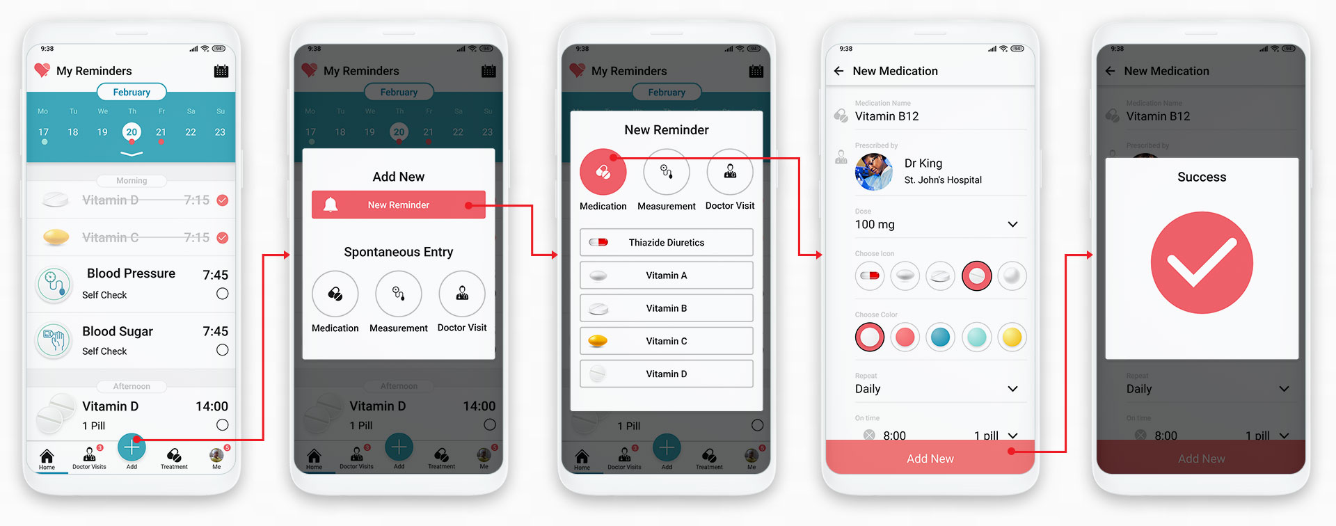 During the Interview Sessions, the easy and intuitive process of adding New Reminders was co-designed with the users.