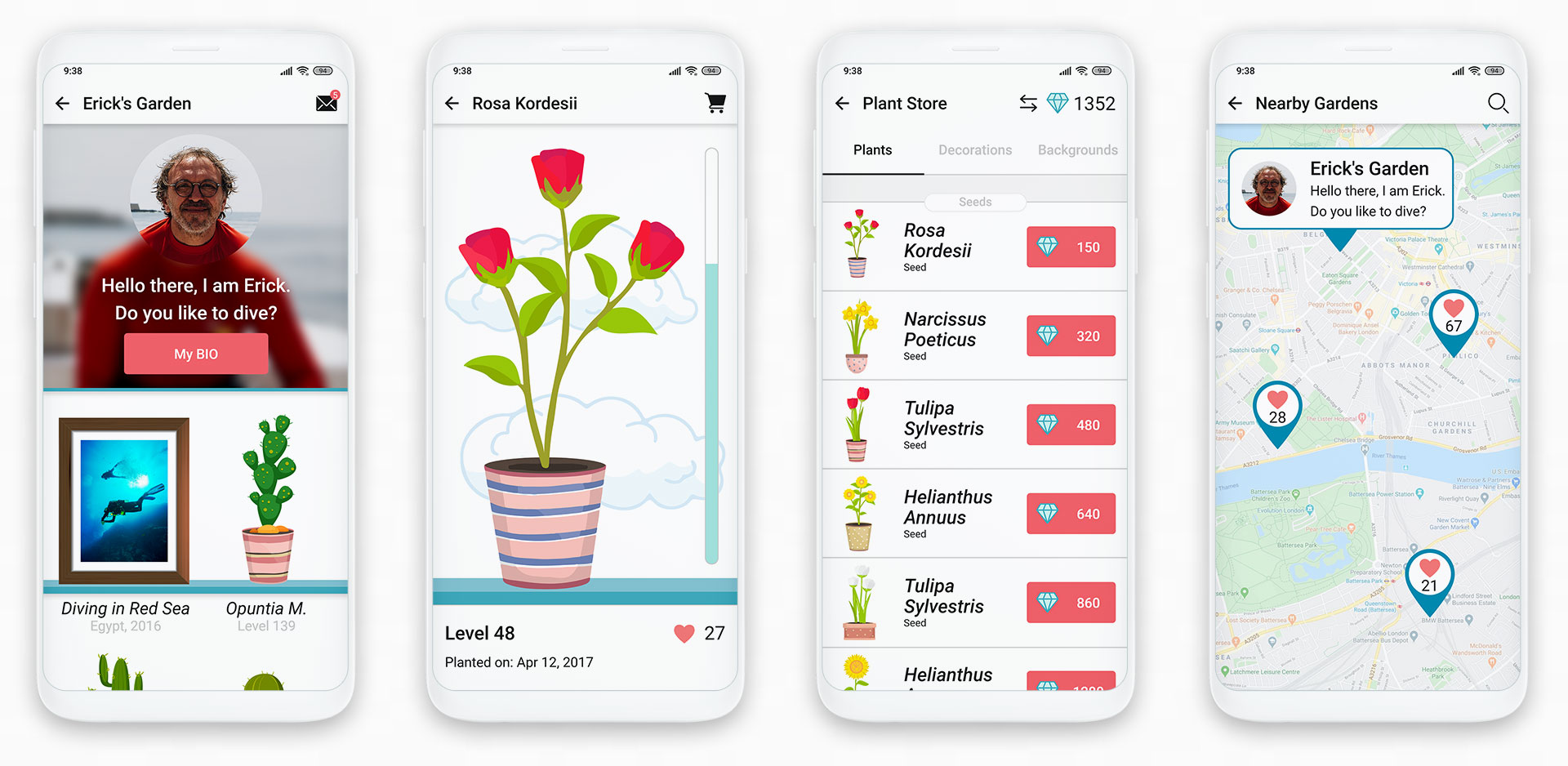 Additionally, steps gathered by users could be used as a micro currency in Personal Garden. Users could exchange steps for in-garden decorations and plants. Steps could be also donated to friends and family members.