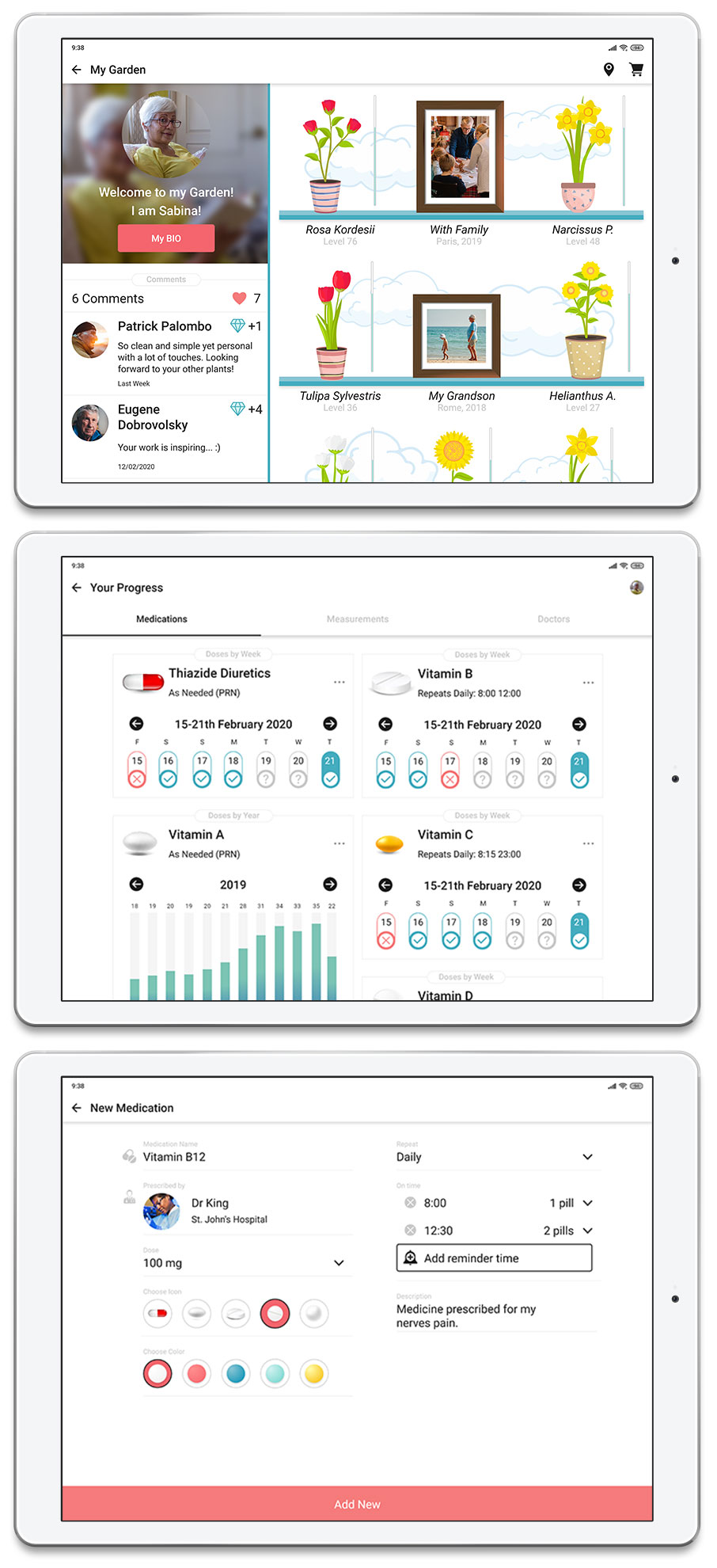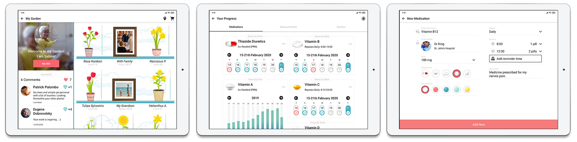 Additional screen space provided by the bigger devices, compensates for vision and motoric losses acquired by an aging body. It is why the tablet version of Pill Reminder was thoughtfully designed.