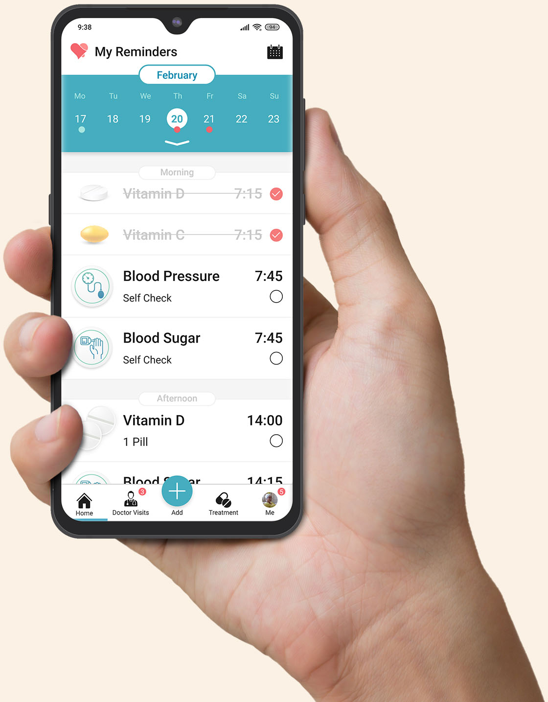 The Personal Health Assistant should also include statistics function to monitor your progress and medication intake.