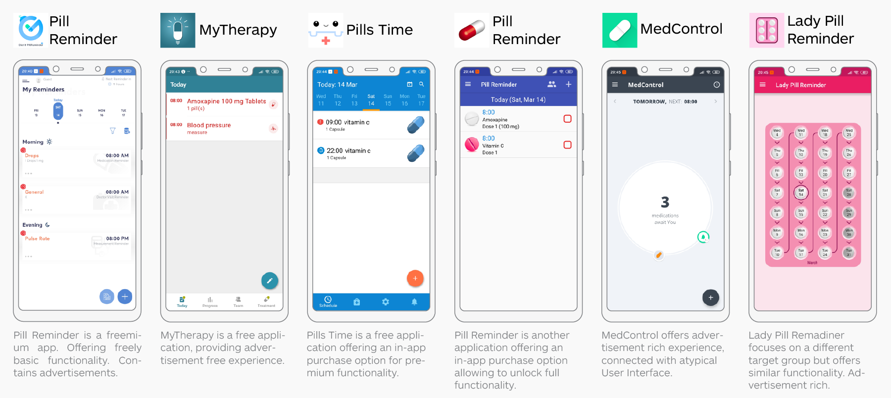 From the competitive analysis, I learned that there are generally two types of pill reminder applications. One targeting patients, who need to intake medications regularly. The second group contains women, taking birth control pills.