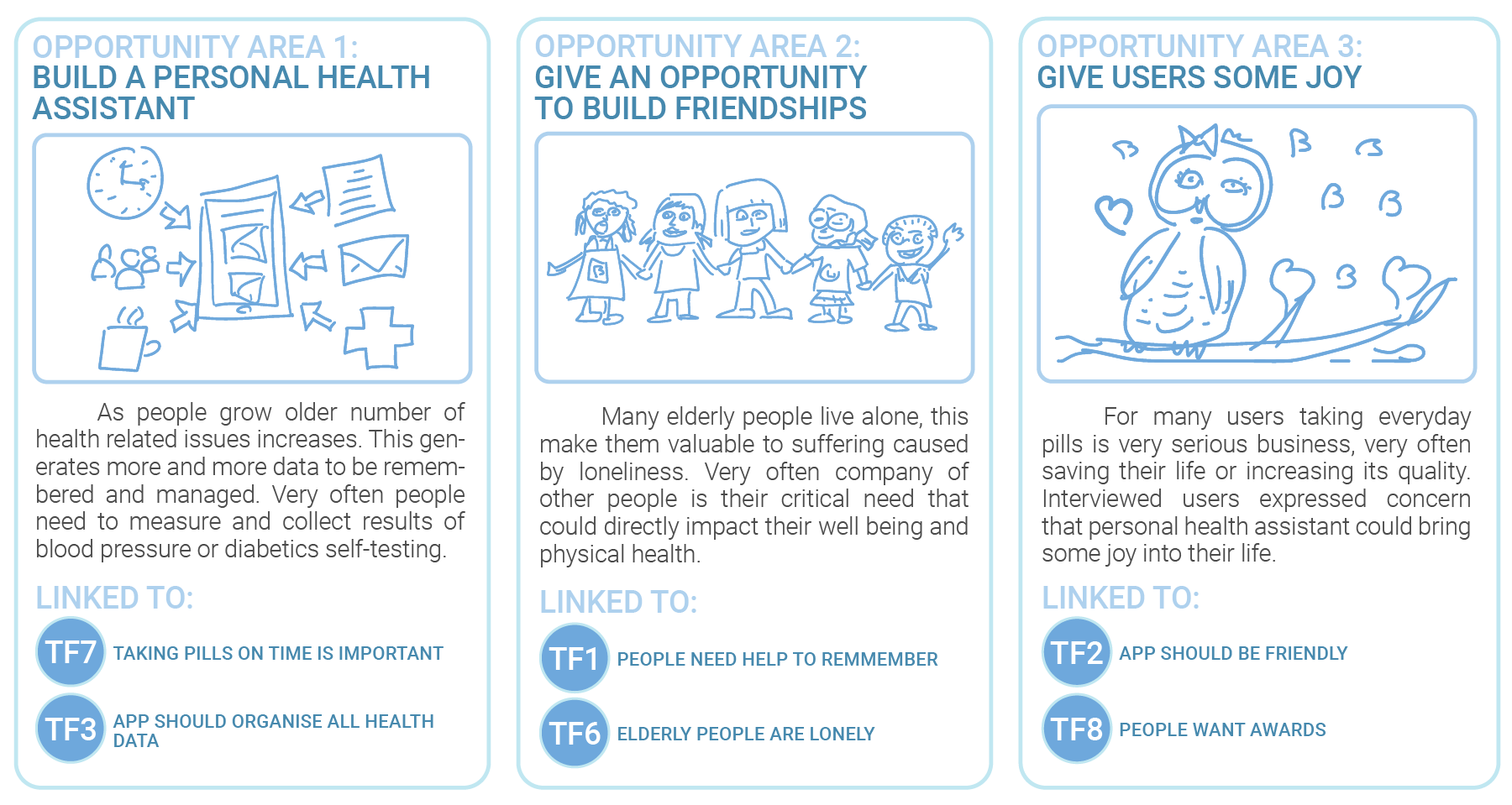 I interviewed 10 users aged 59 to 72. Every interview session was recorded, in order to recall information afterward. User Interviews also finished Discover Phase, it was time to converge gathered information.