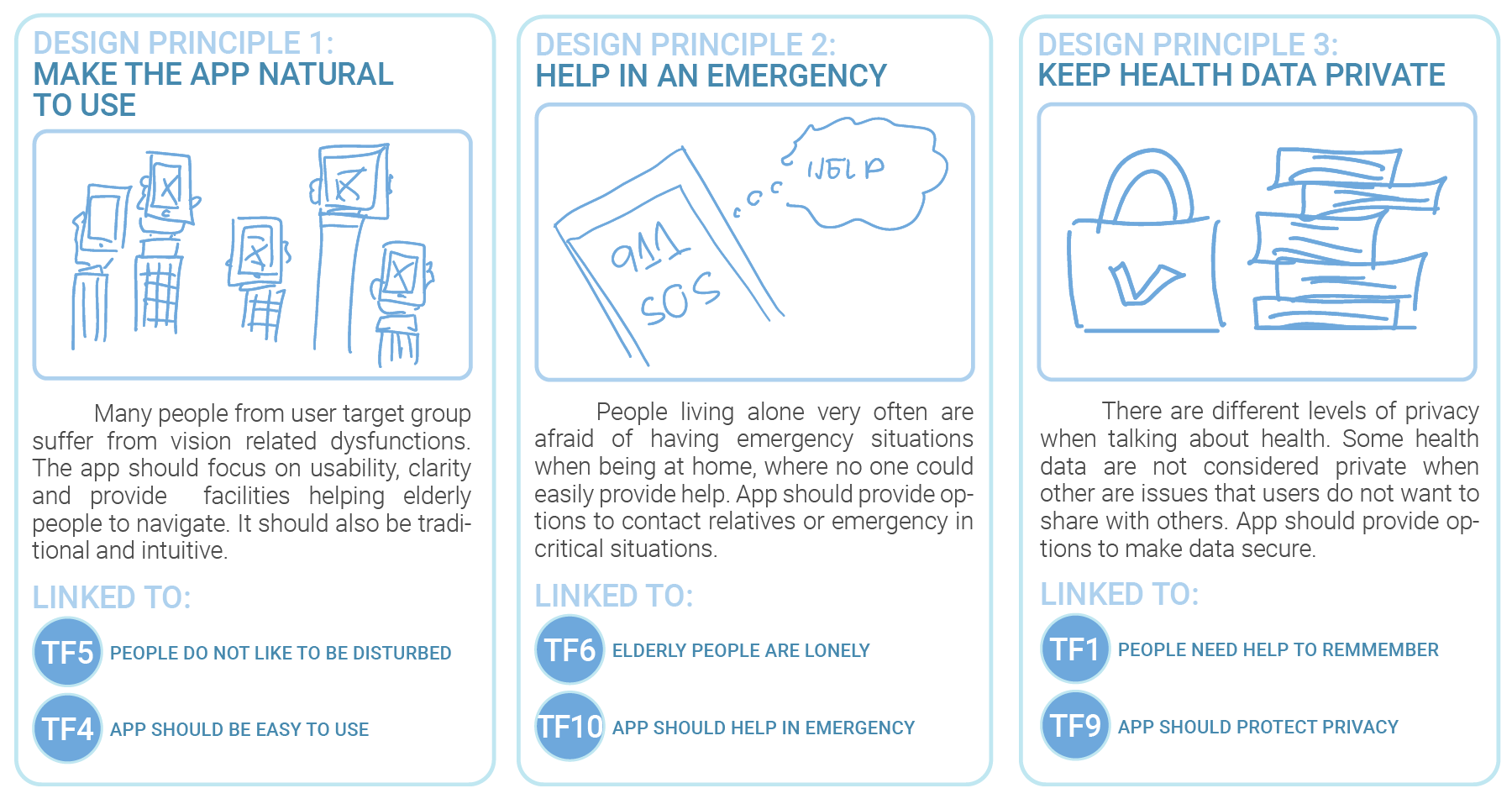 The results of the brainstorming were later evaluated by answering HWM Questions based on Design Principles.