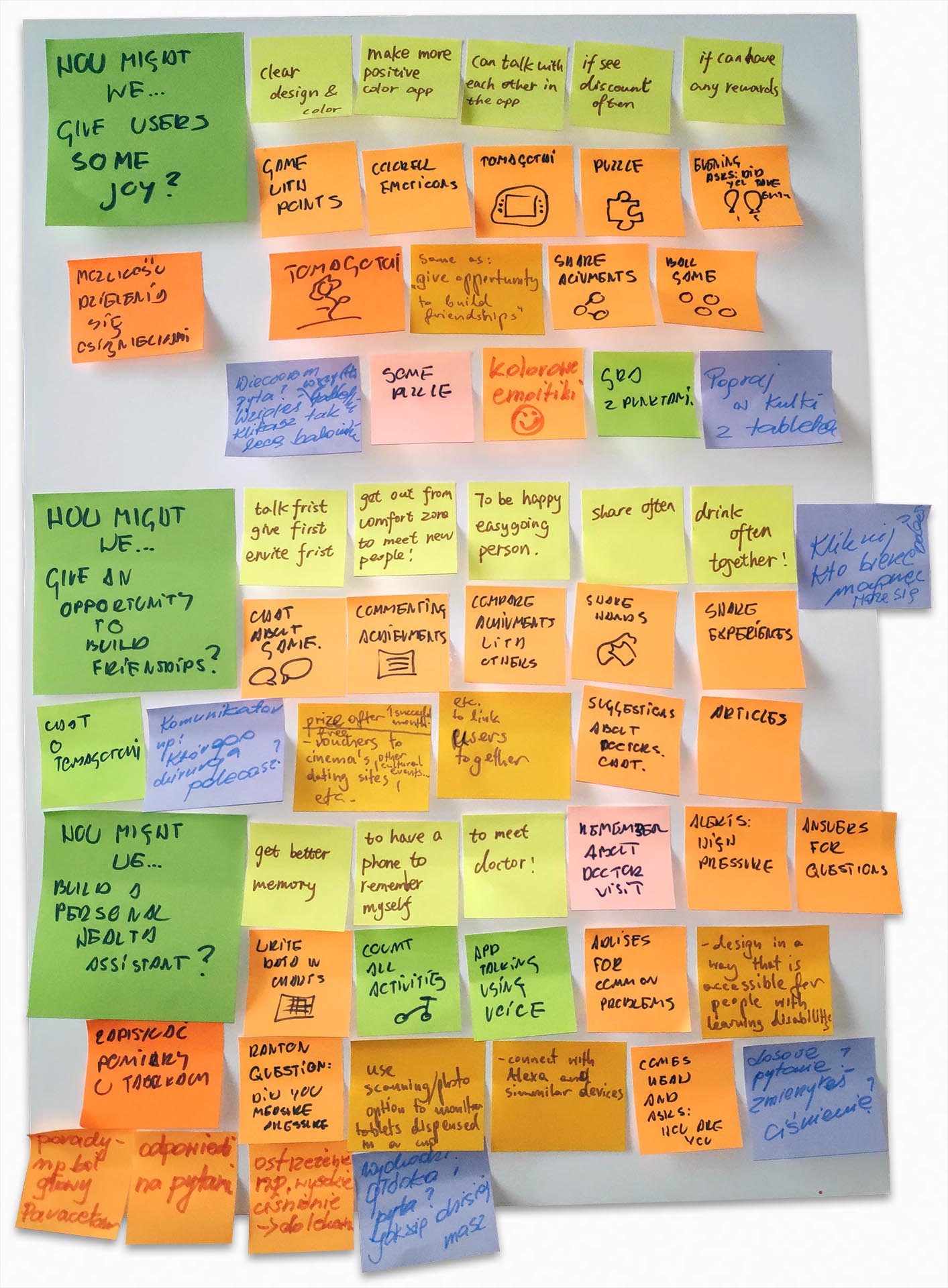 The Develop Phase started with brainstorming. I gathered some of the users who participated in the previous user testing sessions, they were playing the roles of stakeholders. Together we organized 30 minutes long brainstorming meeting to generate as many creative ideas as it was possible. During the brainstorming, we were answering questions based on Opportunity Areas.