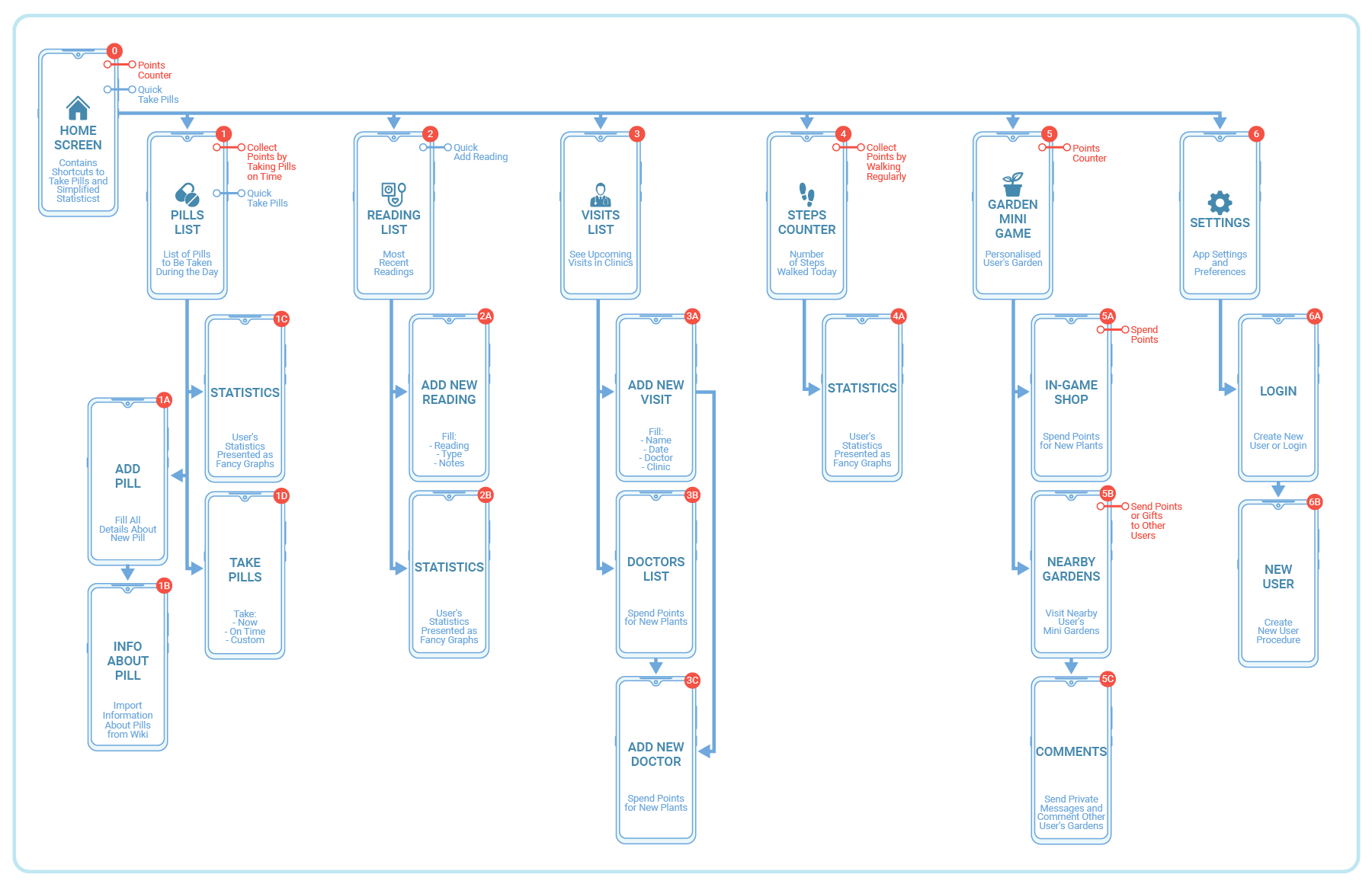 User Flows helped me to understand the holistic idea of the application I was designing. It was a very important intermediate step before creating Screen Flows.