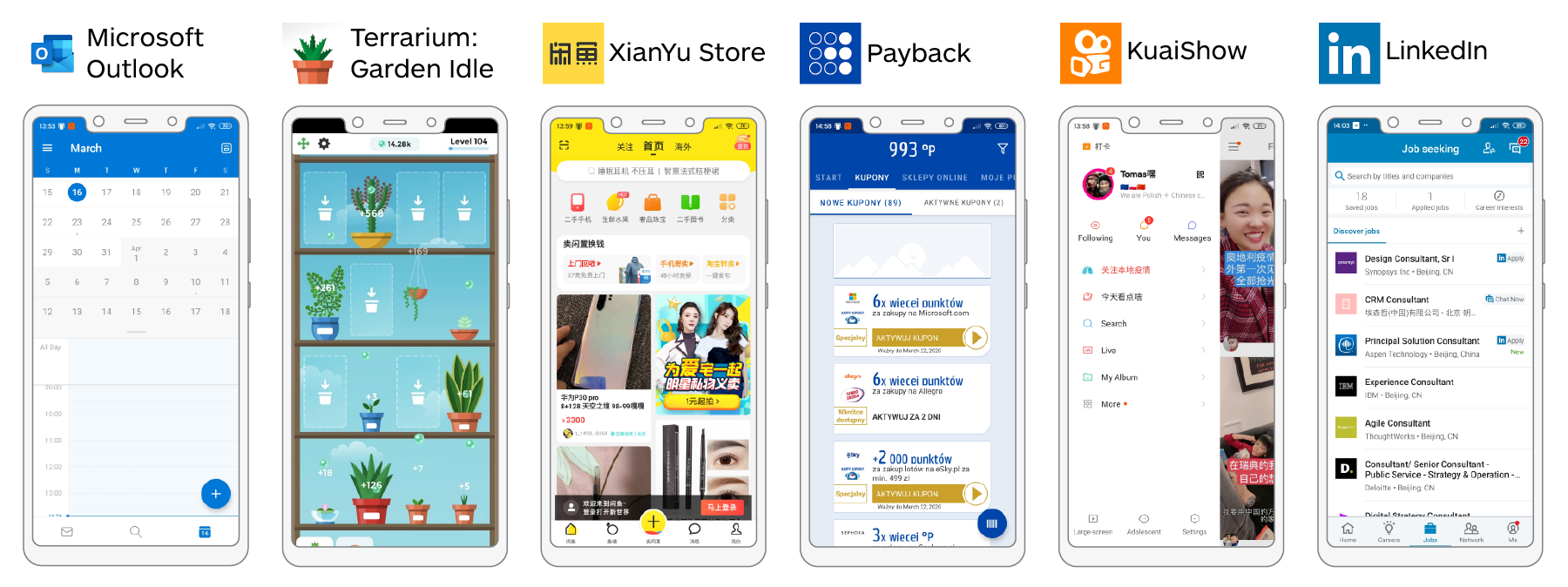 In the next phase, I conducted a competitive analysis. I read reviews and installed a group of selected applications on my phone. Below I am presenting home screens of a few most interesting ones.